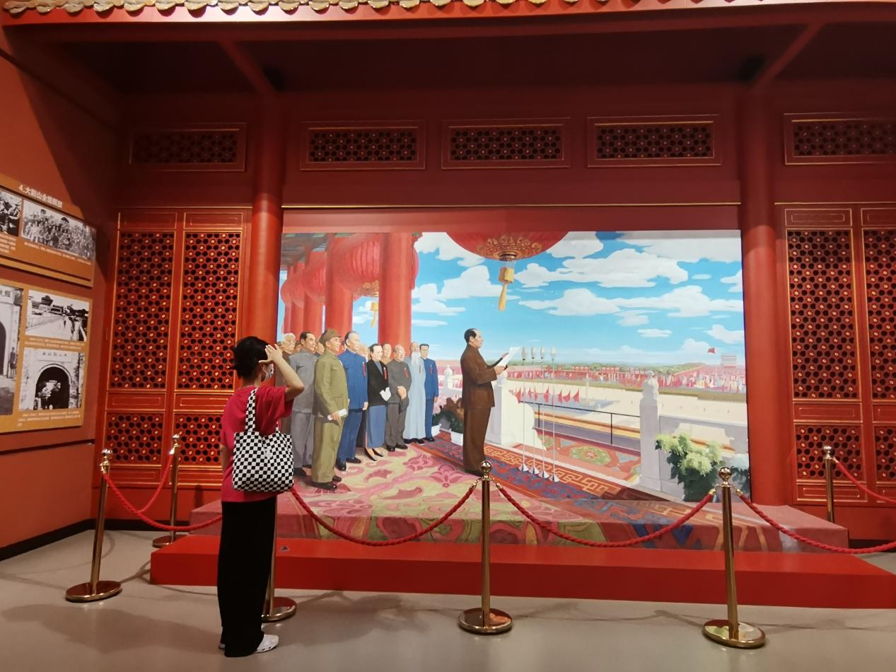 阅读着对于它们“辉煌战绩”的介绍,实践队员们的内心充满了敬佩,工农红军使用过的纺车、机枪、发电机、煤油灯;刘邓大军挺进大别山时使用过的桌椅板凳;在抗日战场上缴获的日本军刀、军用照相机等等。每一件物品的背后都拥有属于他们的革命故事,这也让每一位团队成员都为之动容,不禁令人感慨一番:今天的幸福生活得之不易。这不仅仅是祖国革命历史的见证,更是让红色文化得以绵延的瑰宝。