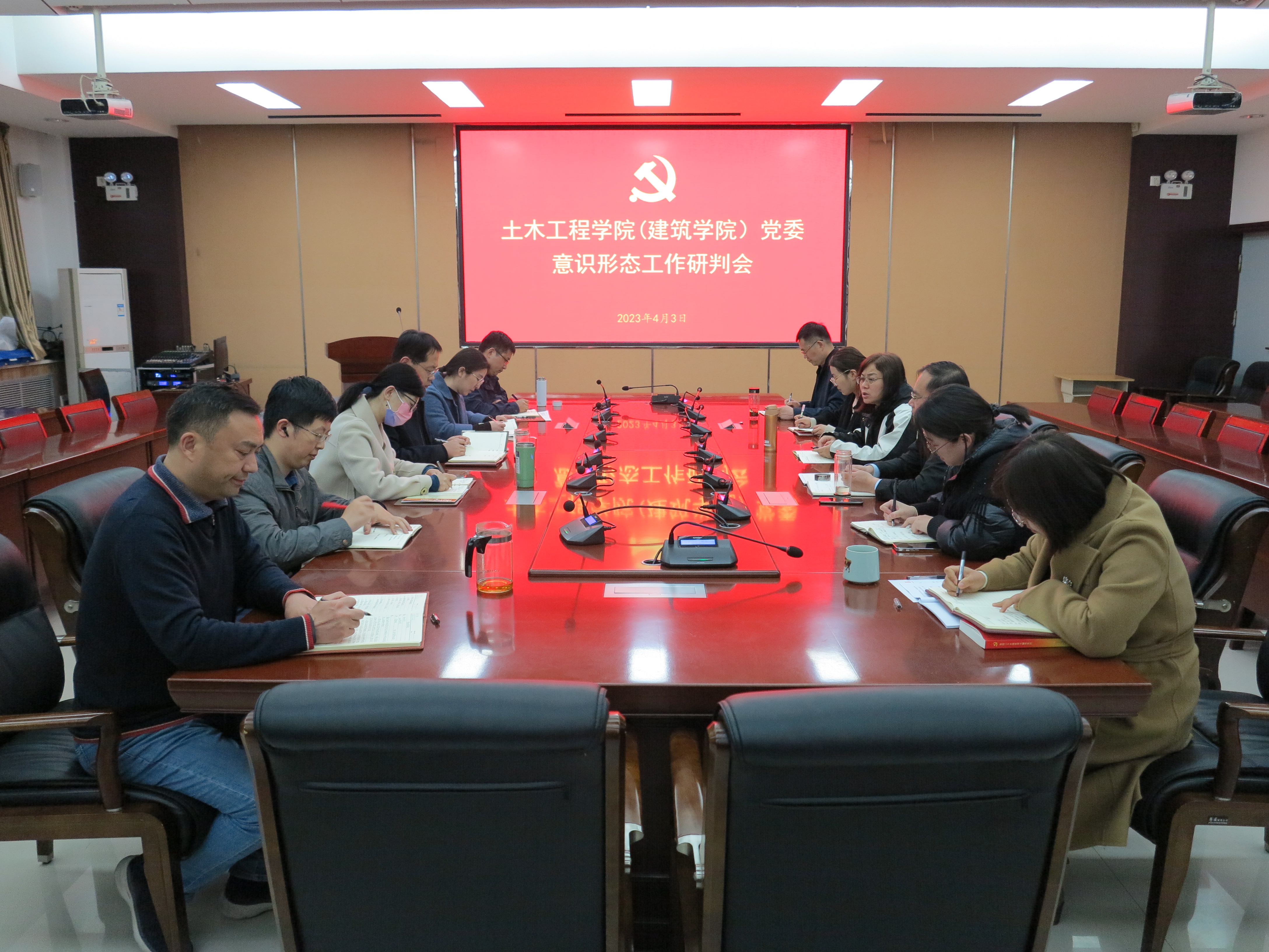415日下午,土木工程亚洲av建筑亚洲av党委在32208报告召开意识形态专题研判会。亚洲av党委委员和全体行政人员参会,会议由院党委书记王影主持。