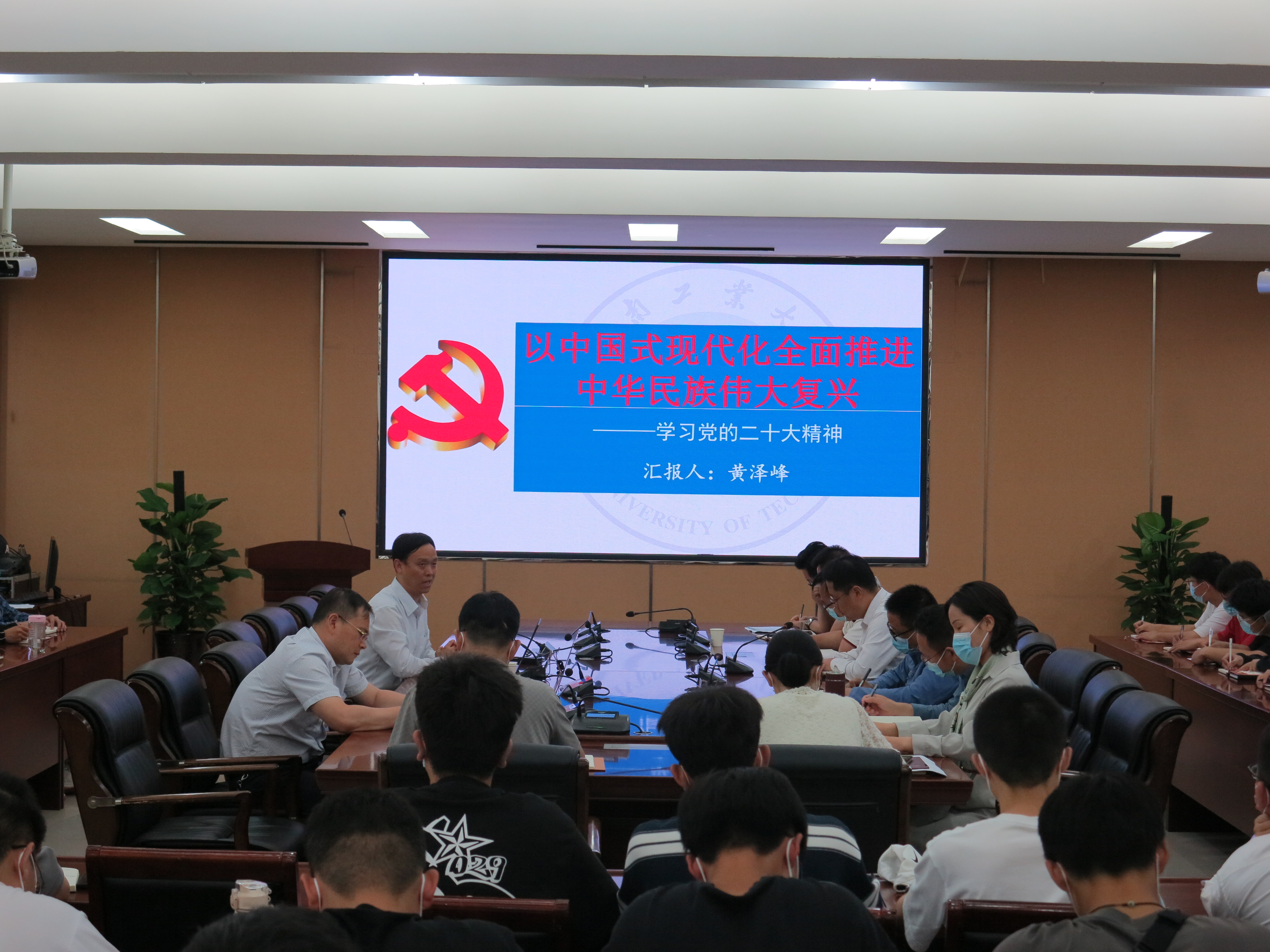 黄泽峰以《以中国式现代化全面推进中华民族伟大复兴》为题作了专题报告。他首先带领大家全面回顾了党的二十大的重大意义和报告的主要内容,他指出:以中国式现代化全面推进中华民族伟大复兴,是新时代新征程中国共产党的使命任务。接着,他结合当前的国际经济、政治、军事发展形势,着重阐述了中国式现代化的发展历程、特点和任务要求,强调在前进路上必须牢牢把握“五大原则”。最后,他号召广大党员要勇挑重担、勇担重责,团结和带领人民真抓实干、埋头苦干,努力做出无愧于党、无愧于人民、无愧于历史的成绩!