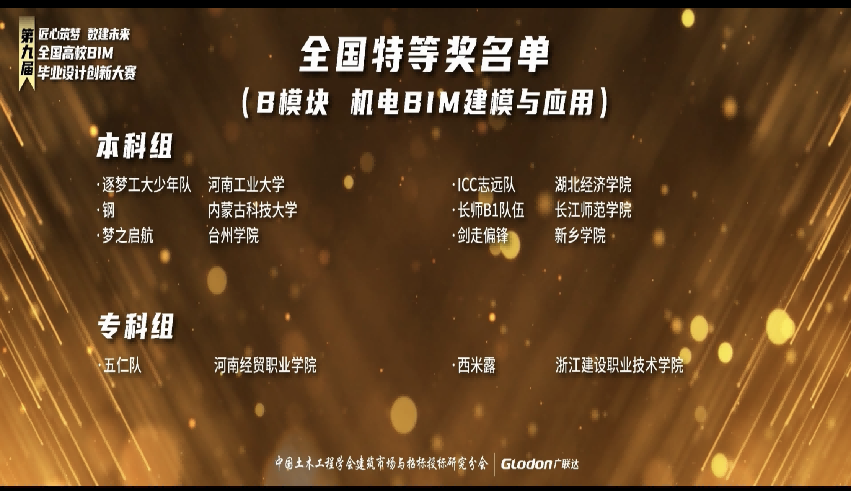 近日,由中国土木工程学会建筑市场与招标投标研究分会和广联达科技股份有限公司共同主办,东南大学、华南理工大学、北京交通大学、北京建筑大学承办的“第九届全国高校BIM毕业设计创新大赛”总决赛落下帷幕。我校亚洲av 建筑环境与能源应用工程专业组成的参赛队伍成功进入全国总决赛,经过层层角逐,最终以全国最高分数斩获特等奖。