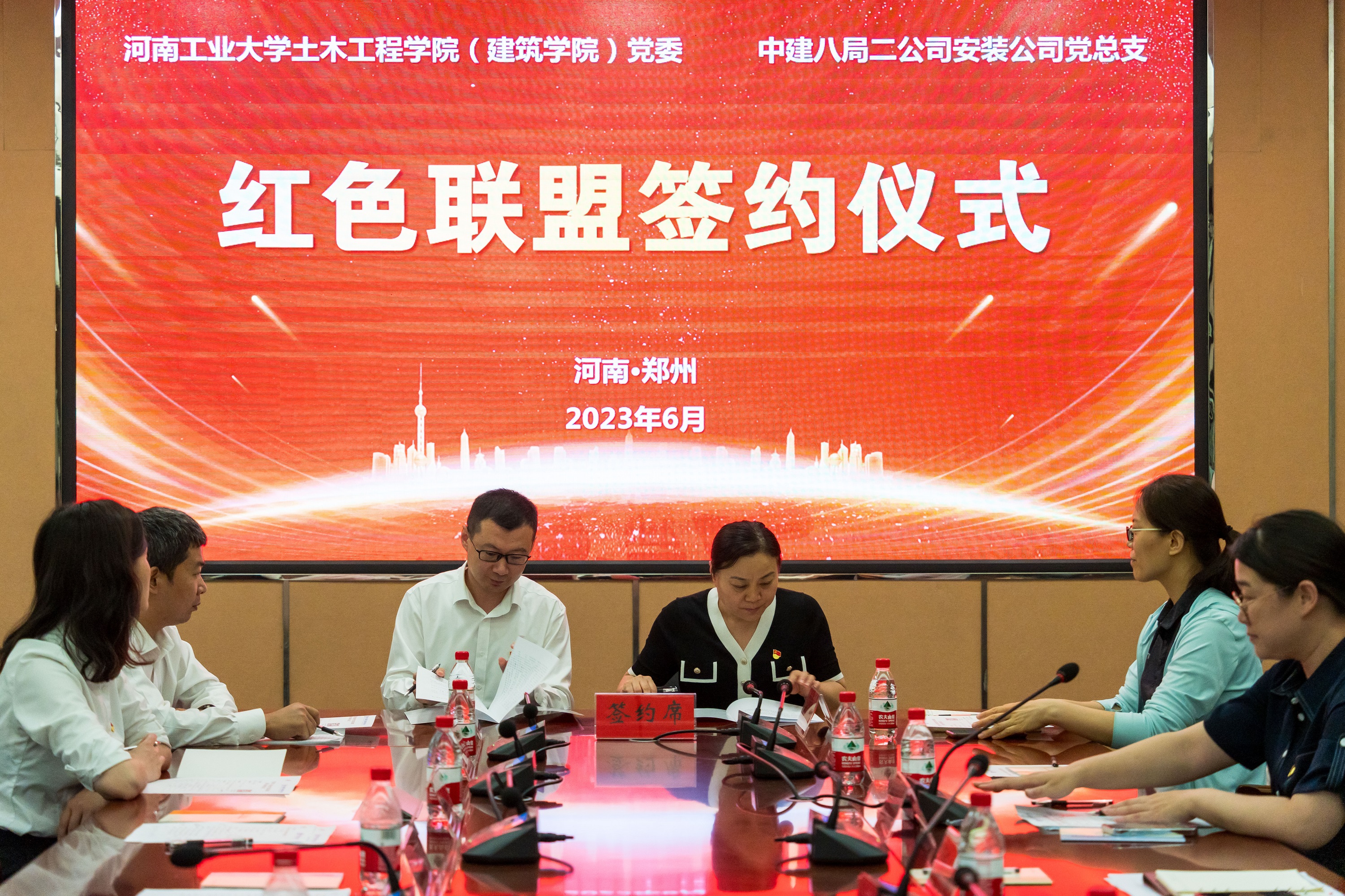 与中建八局二公司安装公司在32208会议室举行校企党建联建活动暨“红色联盟”签约仪式。中建八局二公司安装公司工会主席、总会计师王东伟,公司中原区域负责人、党支部书记胡小波,中原片区党支部组织委员、校友代表王禹东等一行9人,来到亚洲av