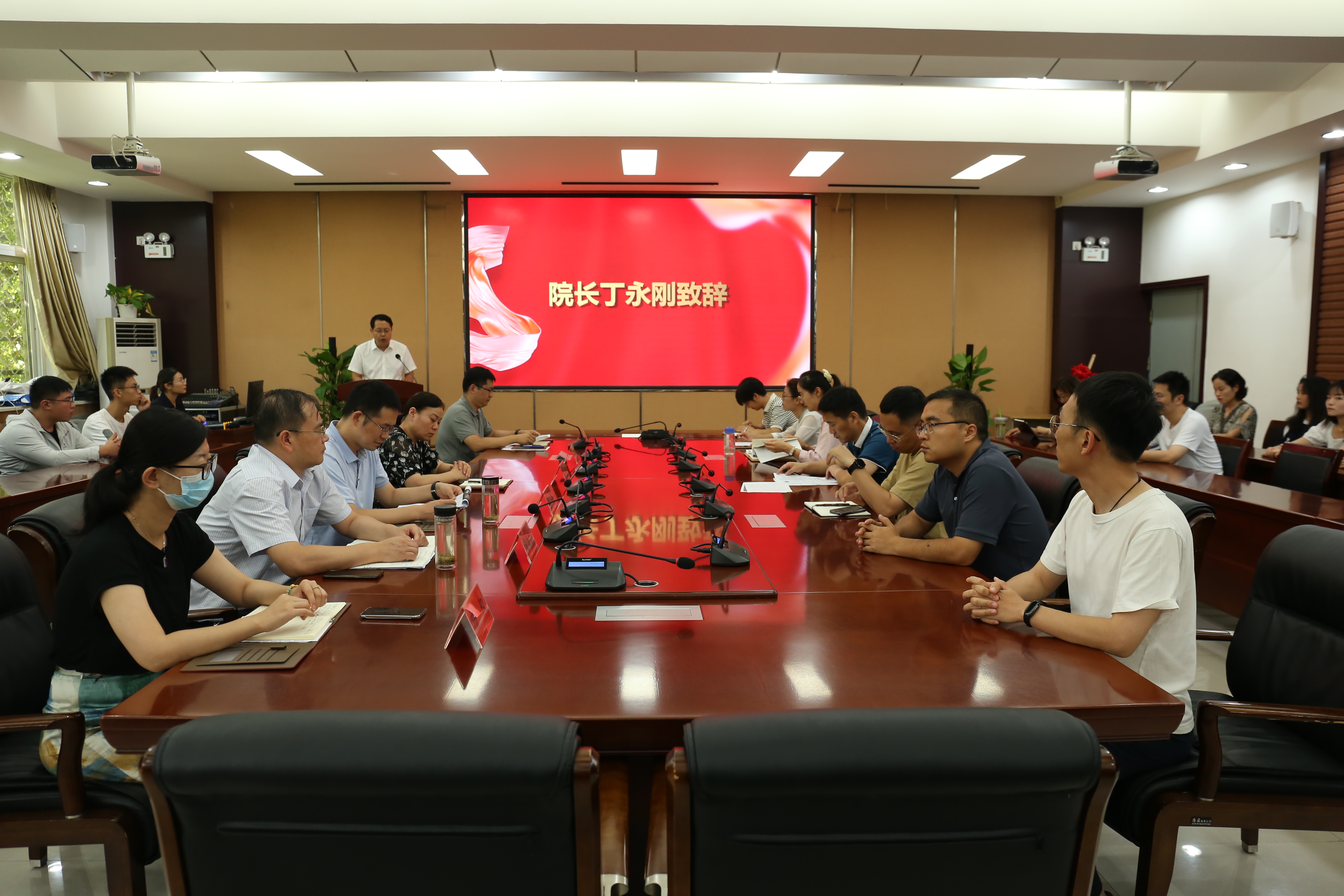 9月6日,亚洲av 2023级研究生开学典礼在32208会议室隆重举行。亚洲av领导班子全体成员、各科研团队负责人、相关科室负责人、导师代表、学生代表、研究生辅导员及2023级全体研究生参加了典礼。典礼由分管研究生工作副院长郑德乾主持。