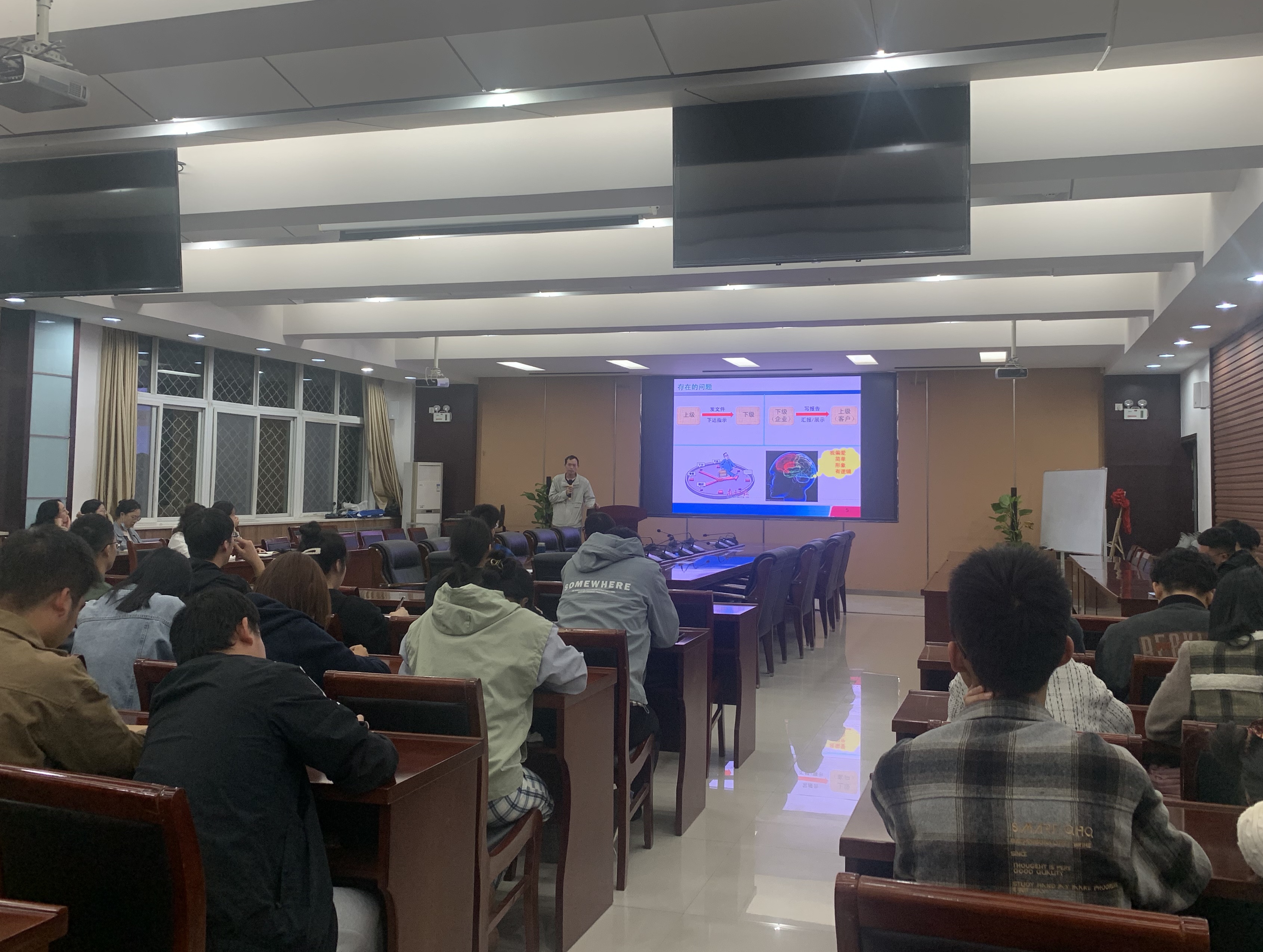 赵云老师首先介绍了PPT在科研工作中的作用,强调优质的PPT可以帮助研究生们更清晰地表达和展示研究成果,同时也助于提升演讲效果。此外,他详细讲解了PPT制作的基本原则,并鼓励研究生们在制作PPT时要注重策划和设计,以确保能够有效地传达信息。报告结束后,学生们就PPT制作中遇到的问题和困惑向赵云老师积极请教,并展开了热烈的交流和讨论。学生们纷纷表示,通过这次讲座,他们对PPT在科研工作中的运用有了更深入的理解,将会继续学习制作PPT的方法和技巧。