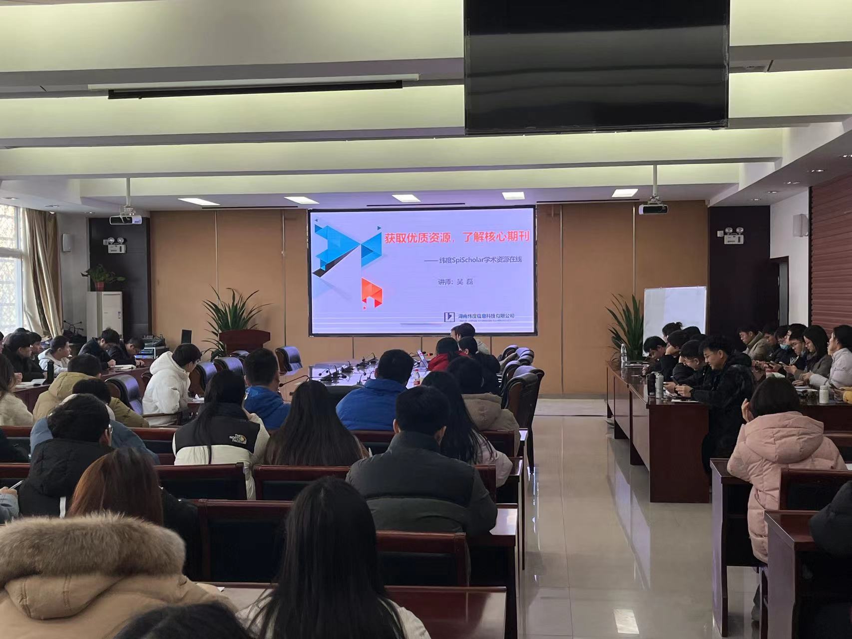 2024年1月10日,湖南纬度公司讲师吴磊应邀在32208报告厅为亚洲av 师生进行了主题为“了解核心期刊,获取优质资源”的专题培训,亚洲av部分老师和全体研究生参加了本次培训。