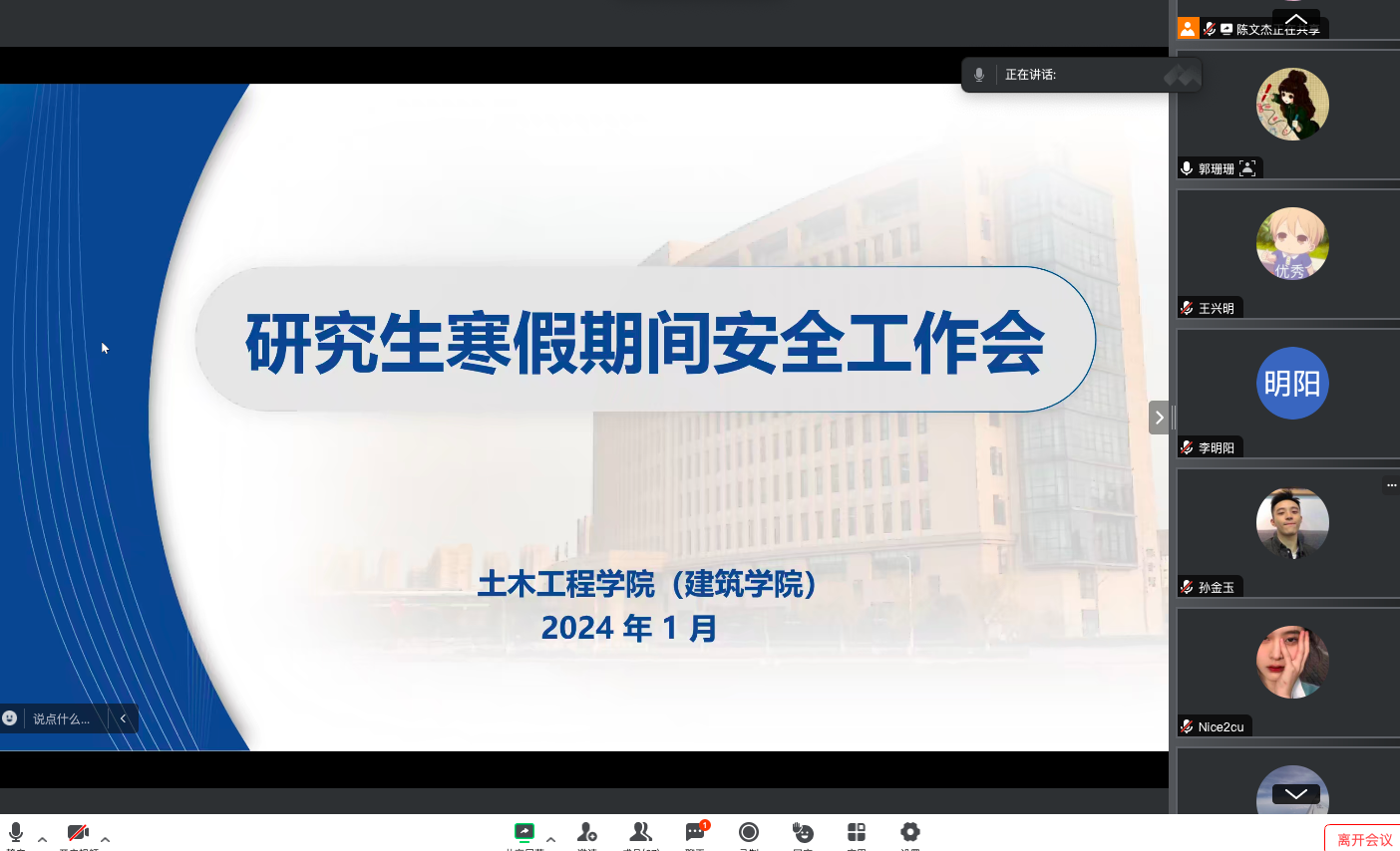 为进一步加强寒假期间亚洲av研究生安全教育,提高学生的安全防范意识,1月22日至26日,亚洲av 多次召开研究生寒假期间安全工作会,辅导员郭珊珊、全体研究生班委及留校学生参加了会议,会议由郭珊珊主持。