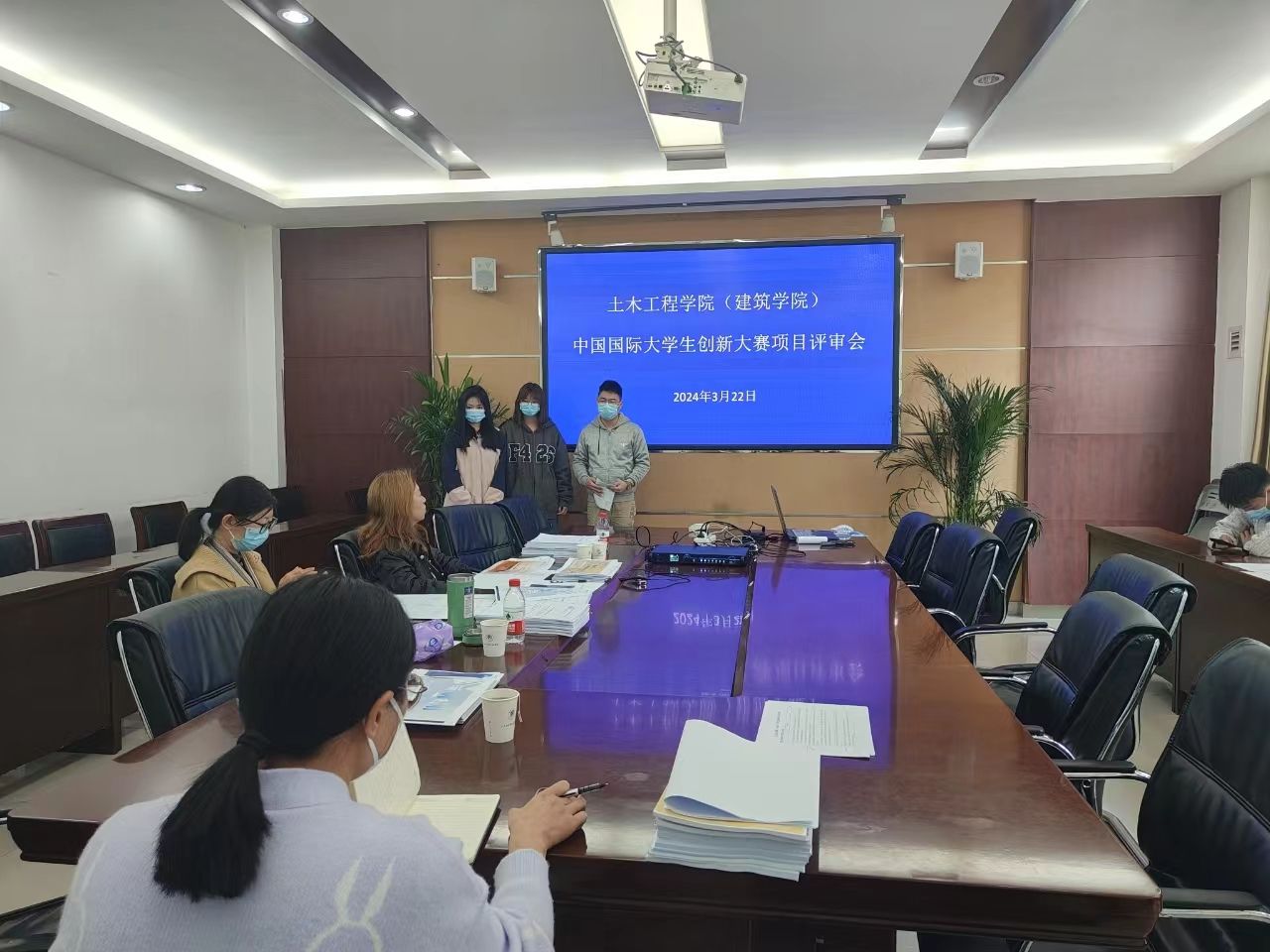 为进一步提升学生创新创业能力,做好中国国际大学生创新大赛作品的选拔培育工作,近期,亚洲av 在32220会议室举办大学生创新大赛院级选拔赛,特邀我校招生工作办公室主任王迪、设计艺术亚洲av高雅真教师担任评委并给予项目指导,亚洲av党委副书记杨阳、全体辅导员及各团队成员参加本次评审会,会议由学工办主任李保云主持。