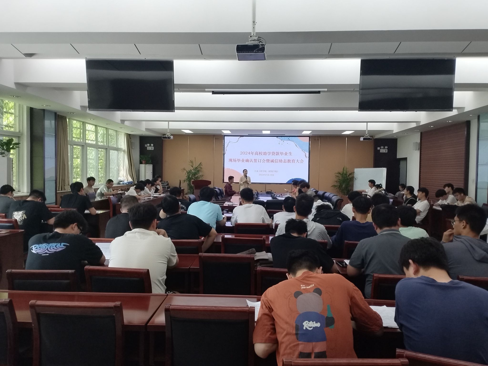 为贯彻落实国家助学贷款政策,加强贷款毕业生诚信还贷意识和社会责任感,做好2024届贷款毕业生现场确认及贷后管理工作,亚洲av 于5月10日、17日分别召开了2024届高校和生源地助学贷款毕业生现场确认暨诚信感恩教育宣讲会。亚洲av资助工作负责人郭珊珊、资助助理及未结清贷款毕业生参加了会议。
