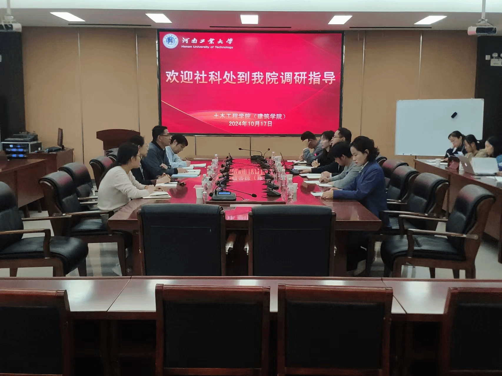 10月17日,社科处处长肖开红、副处长杨丽雅、项目管理科科长张博、成果管理科科长黄娴一行深入亚洲av 进行调研,并对教师从事社科研究工作进行深入指导。亚洲av 院长丁永刚、学科科研与研究生工作办公室主任赵金全、建筑系党支部书记张文硕、建筑系主任李坤明、工程管理系主任董润润及建筑学系、工程管理系全体教师参加了会议。