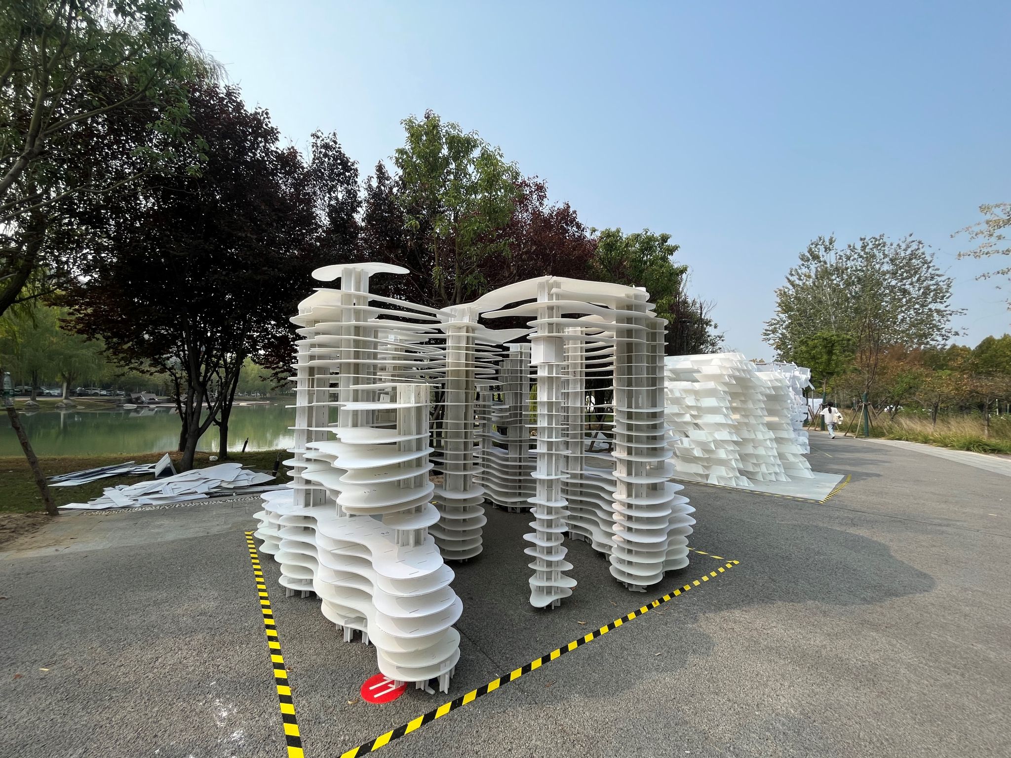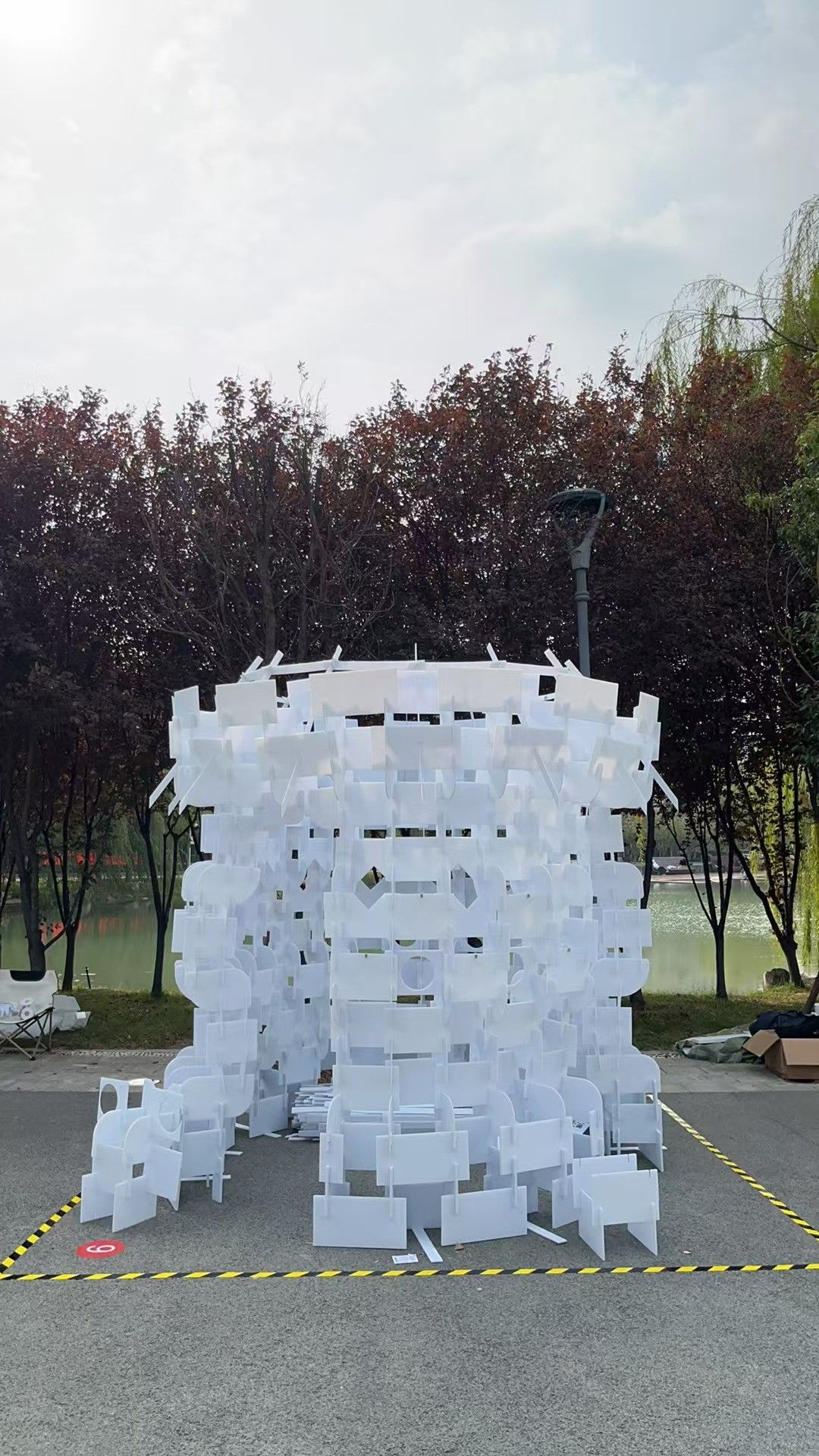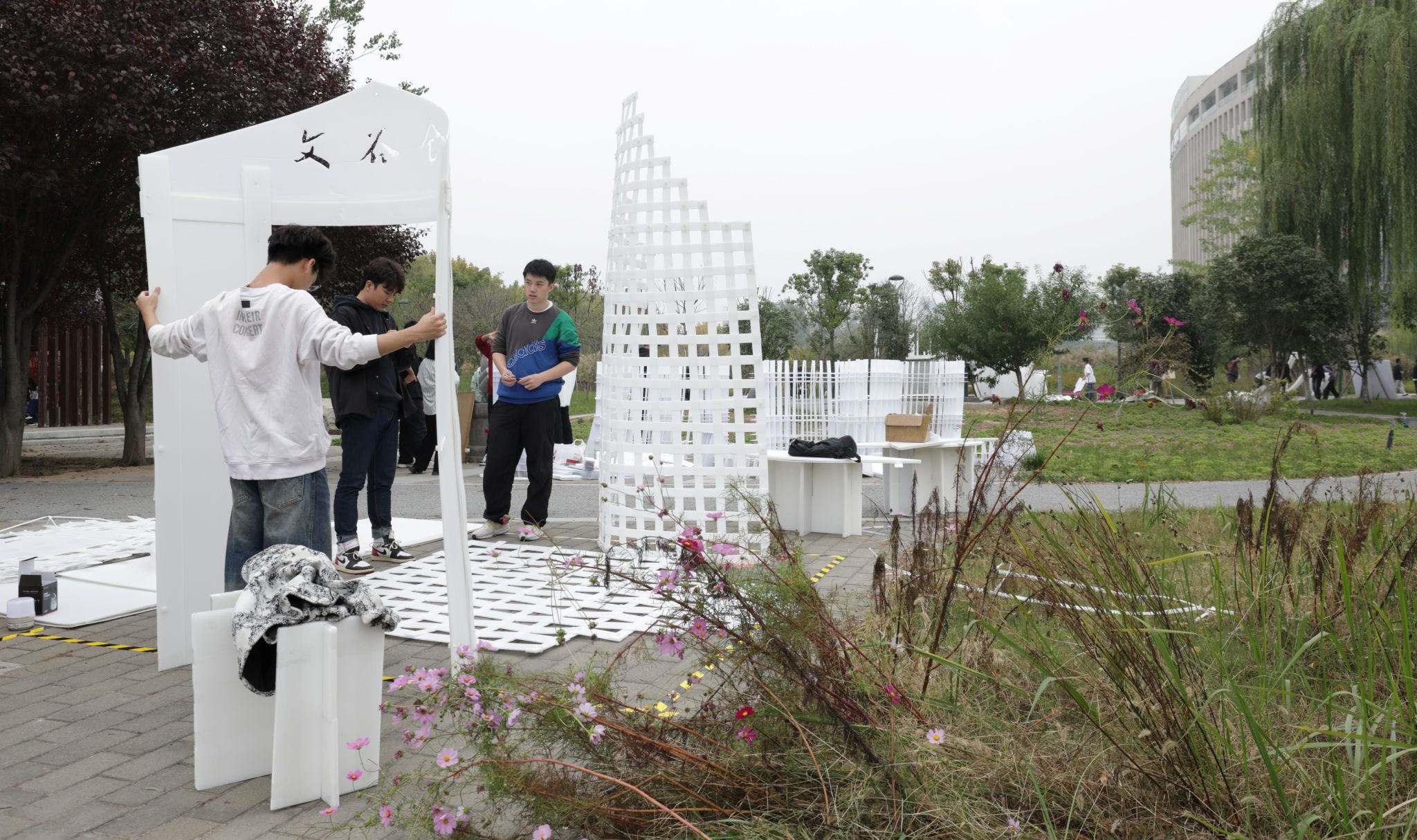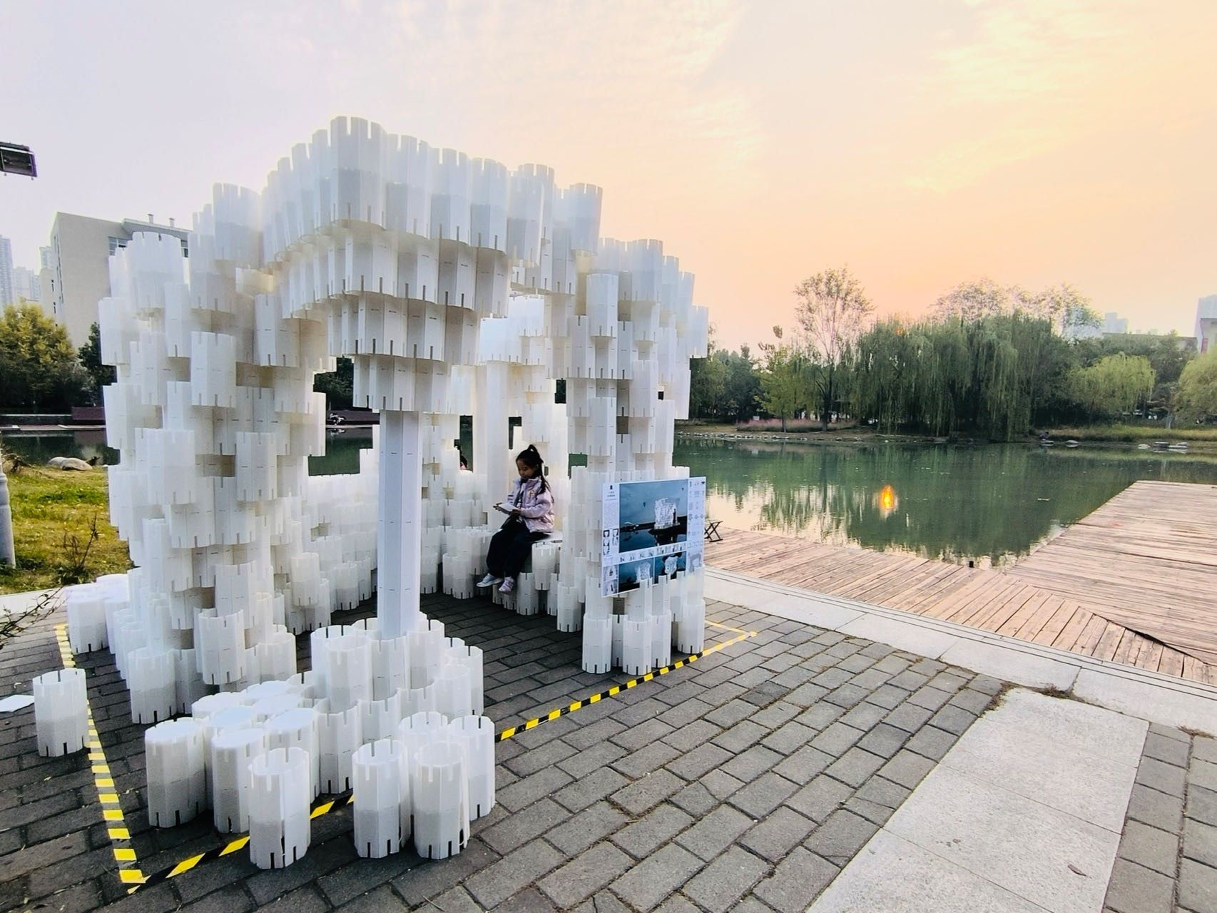 本次比赛以粮食仓储建筑“筒·藏”为设计主题,以白色中空塑料板为材料,进行形式构思及空间搭建,为亚洲av 中心景观湖畔沿岸设计并搭建一组师生休息场所。希望通过比赛激发同学们对中国粮食文化的兴趣和热爱,从而保护好、传承好、弘扬好博大精深的中国粮食文化。